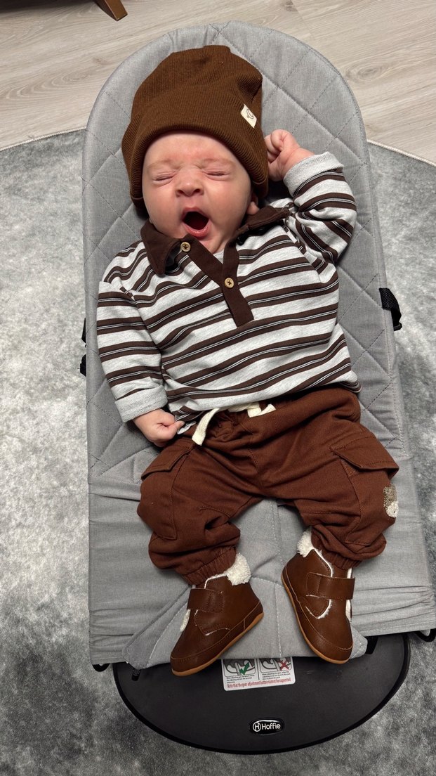 Erkek çocuk için kahverengi ve gri tonlarda çizgili, düğmeli yakalı ve uzun kollu gömlek. Rahat kesim, yumuşak ve sıcak kumaştan üretilmiştir.