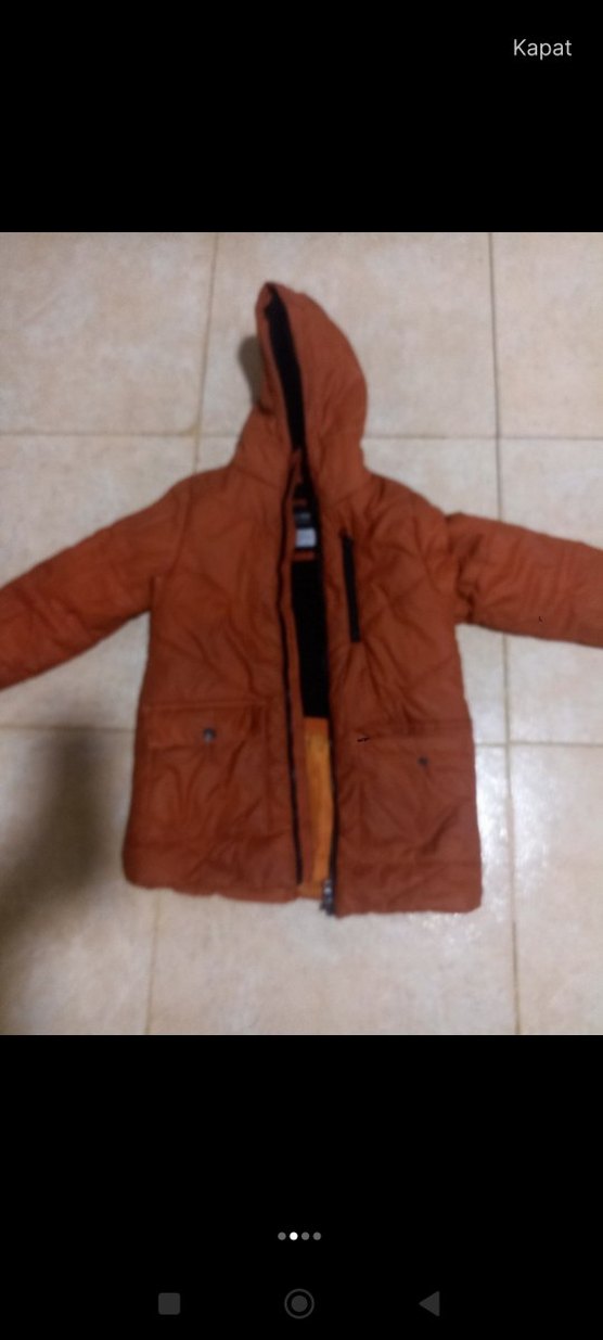 Kahverengi erkek çocuk montu, kapüşonlu, fermuarlı ve kesimli. Yumuşak ve sıcak kumaştan olup, sokak stiline uygundur.