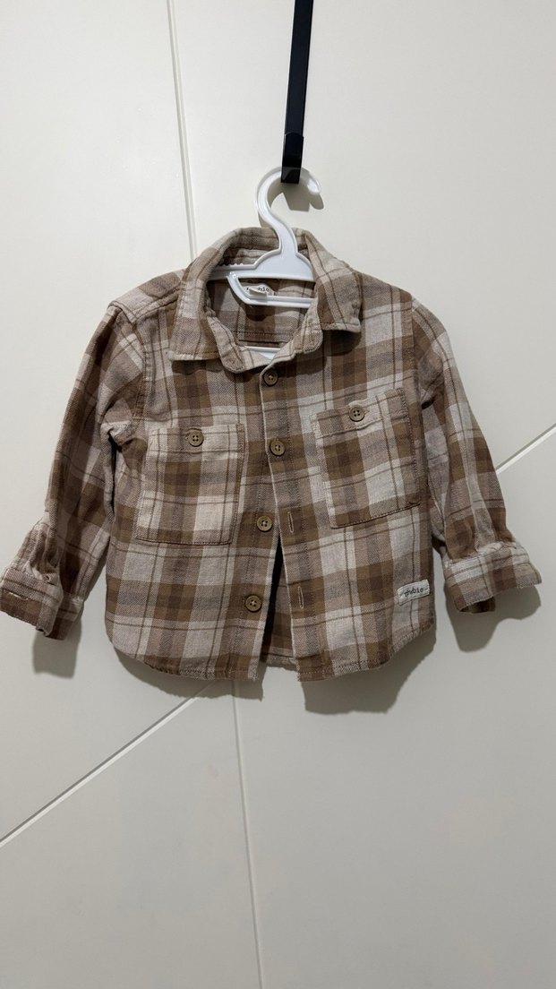Uzun kollu, düğmeli ve yakası kesik detaylı erkek çocuk kahverengi kareli gömlek. Rahat kesimli ve yumuşak keten kumaştan üretilmiştir. Yurtdışından hediye geldı