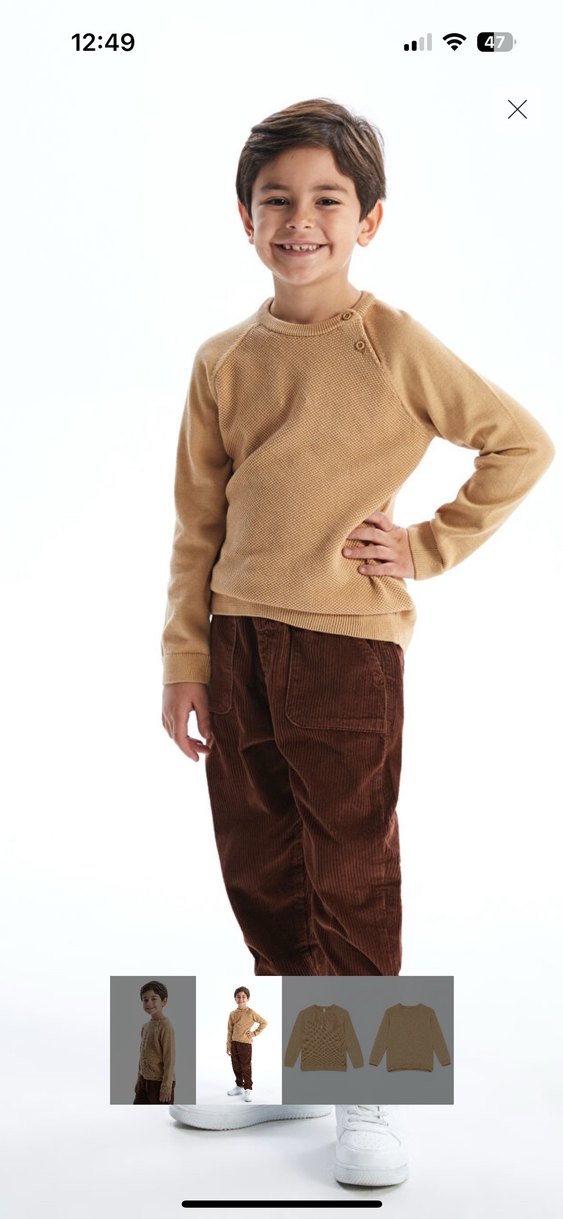 Erkek çocuk için rahat kesimli, yuvarlak yakalı, uzun kollu kahverengi süet sweatshirt. Desensiz ve şık bir günlük tarz sunar.