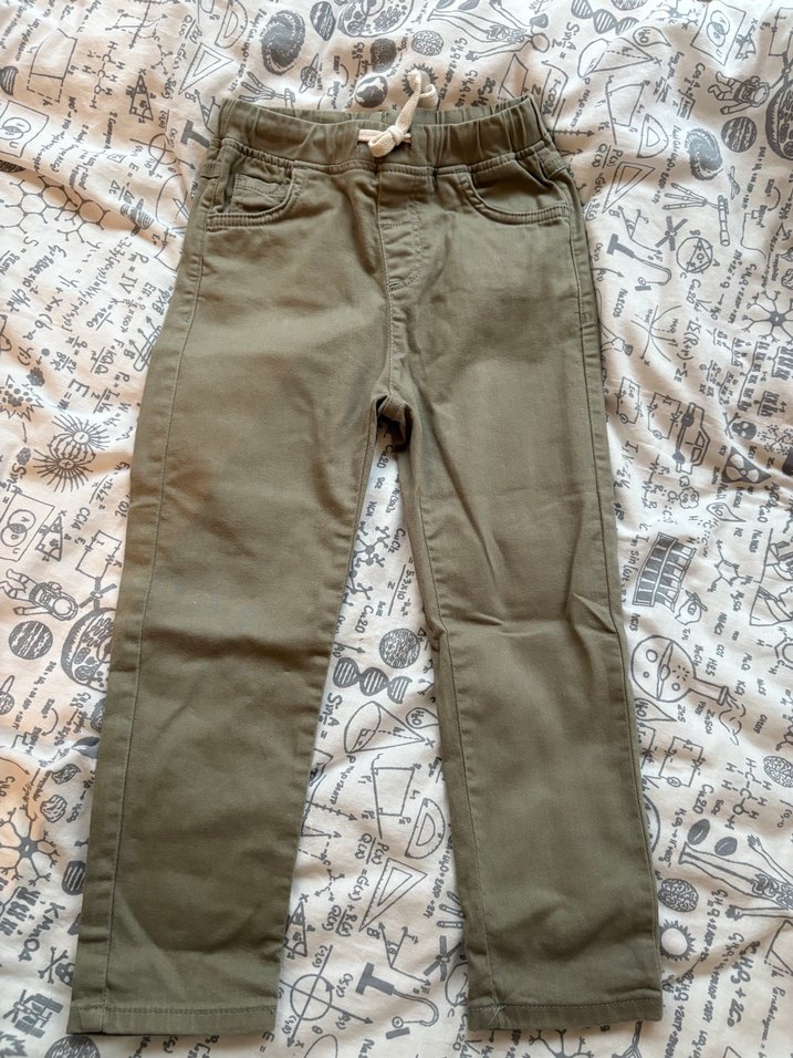 Erkek çocuk için regular fit, kahverengi kemerli pantolon. Düz desensiz, sentetik kumaştan, rahat sokak stili için uygun. 3/4 defa giyilmiş bir kez yıkandı