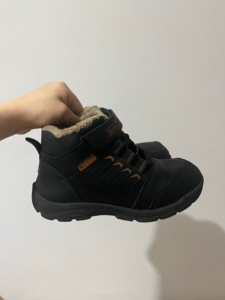 Erkek çocuk için kahverengi yılan deseni ve cırt cırtlı kauçuk bot. Sokak stilinde, sıcak astarlı ve rahat kullanımlık.