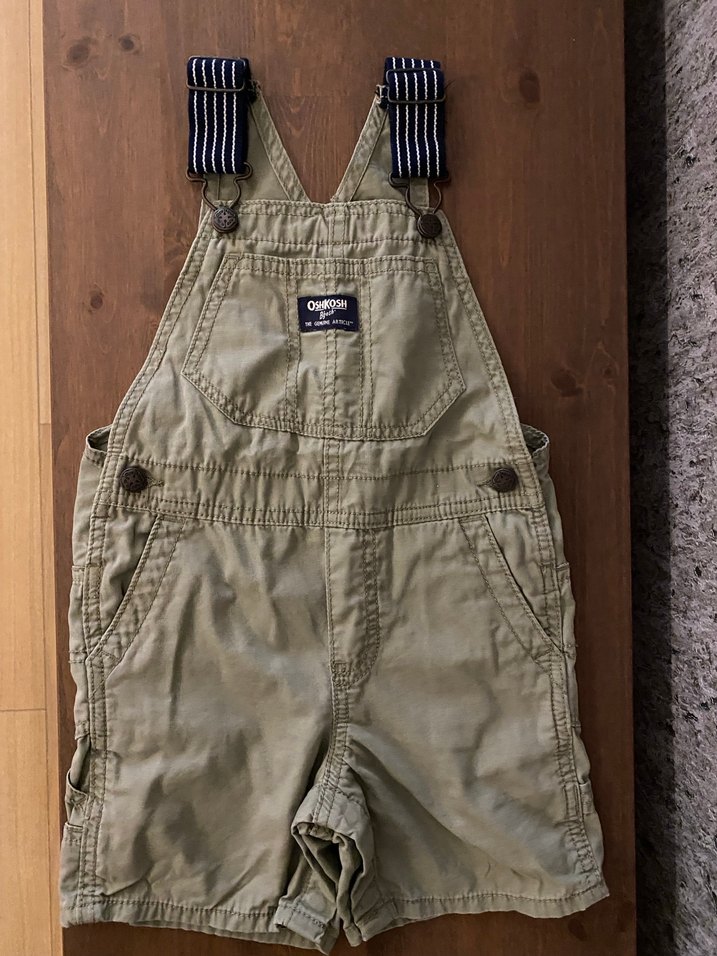 Canvas yeşil şort salopet, tokalı çizgili askılar ve rahat kesim ile sokak stili için uygun, desensiz tasarım.