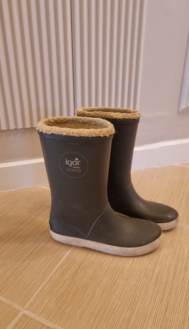Erkek çocuklar için kahverengi lastik botlar, yumuşak astar ve kolay giyim için Velcro bant içerir. Düz tasarıma sahiptir. Yanında 'igor' yazısı bulunur. cok az kullanildi yeni temizdir herhangi bir sikintsi yoktur.