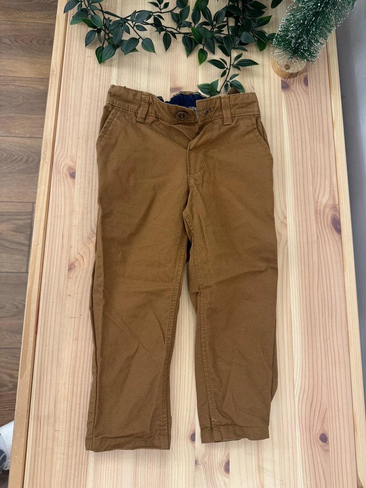 Erkek çocuklar için kahverengi pamuklu, regular fit, tokalı detaylı pantolon, sokak stili için uygun.