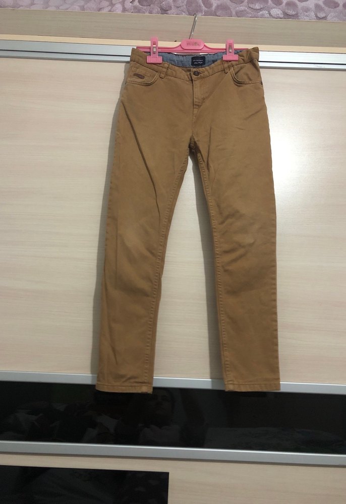 Erkek çocuklar için kahverengi pantolon, rahat kesimiyle sade ve şık bir görünüm sunar.