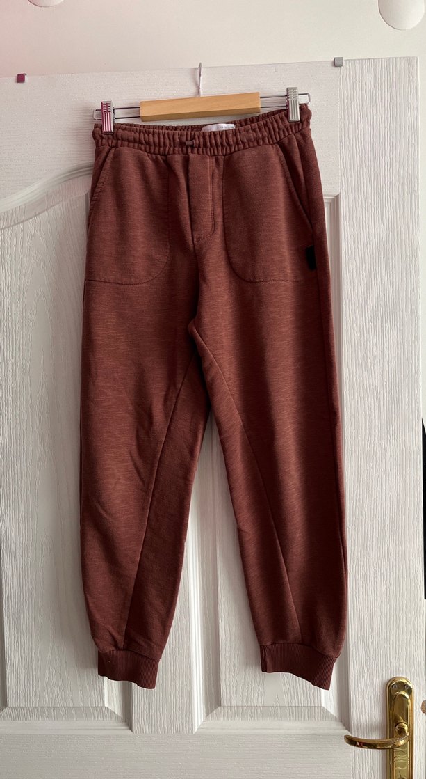 rahat kesim, koyu kahverengi ve yumuşak sıcak kumaştan yapılmış eşofman altı. desensiz tasarımıyla günlük sokak stiline uygun, zahmetsiz şıklık sunar. ️