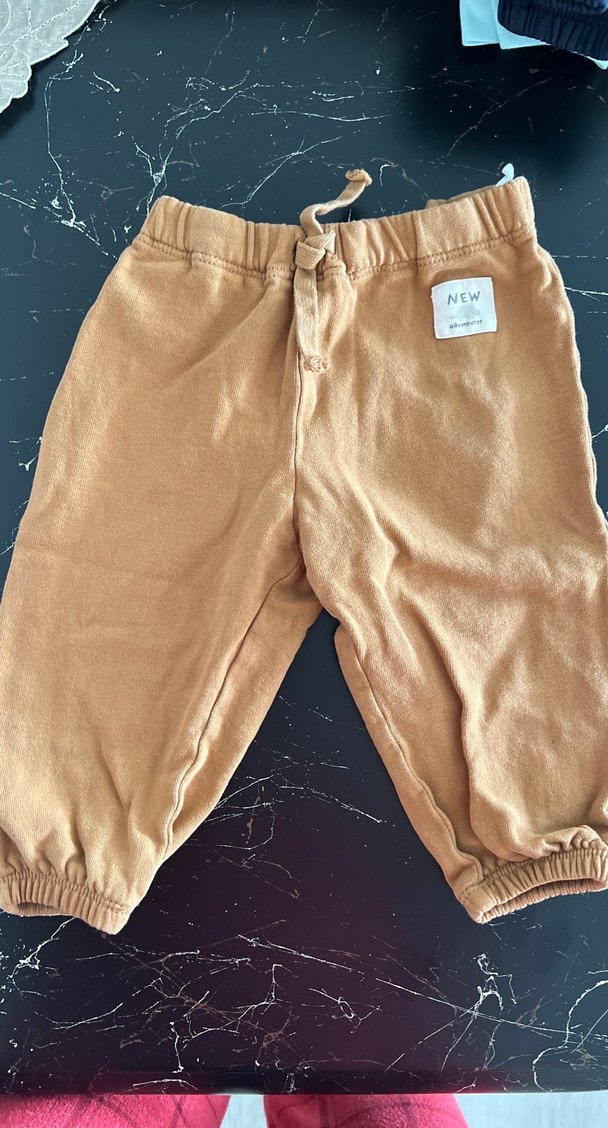 Yumuşak ve sıcak kumaştan, rahat kesim kahverengi erkek çocuk pantolonu. Bel ve paçalarda lastik detaylarıyla konfor sağlar. Parlak dokunuşlu streetwear tarzı.