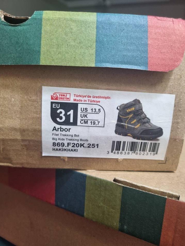 Erkek çocuklar için kahverengi ve gri tonlarda, baskılı desenli, kolay giyilebilen cırt cırtlı trekking bot. Sokak stili için uygun, dayanıklı kauçuk materyal içerir. 1 2 kere giyildi küçük geldiği icin giymek istemedi temizlendi kaldirdim