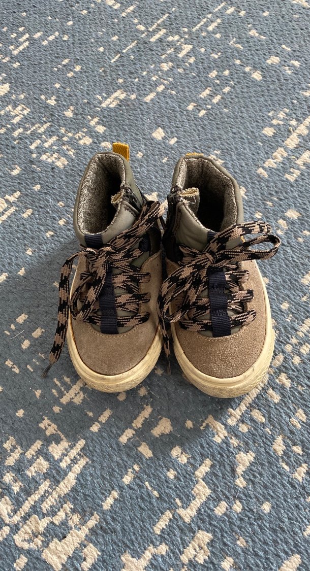 Kahverengi yılan desenli, cırt cırtlı erkek çocuk botu. Kauçuk malzemeden, sokak stili için uygun, gri detaylı.