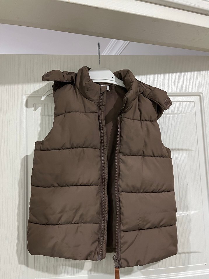 Yüksek yakalı, fermuarlı kahverengi erkek çocuk yeleği. Yumuşak ve sıcak kumaştan, dar kesim ve sade sokak stiliyle tasarlanmıştır.