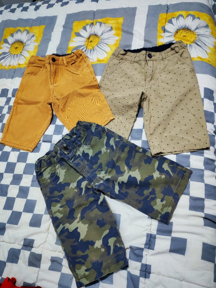 Sentetik kumaştan, düğmeli, bol kesim kamuflaj desenli erkek çocuk şortu. Kahverengi ve renkli seçeneklerle.