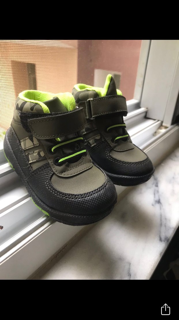 Gri ve yeşil kamuflaj desenli, kauçuk tabanlı ve cırt cırtlı erkek çocuk botu. Sokak stili için uygun. Hediye geldi Hiç giyilmedi sıfır ayakkabı