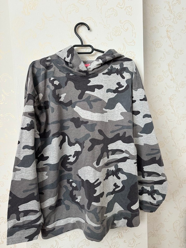 Erkek çocuklar için gri kamuflaj desenli, uzun kollu, yuvarlak yaka ve bol kesim sweatshirt. Yumuşak kumaşı ve drapeli tarzıyla rahat bir görünüm sunar.