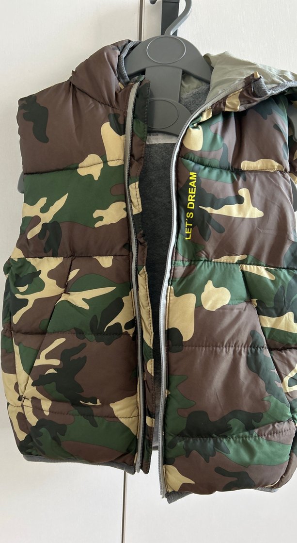 Erkek çocuk için kamuflaj desenli, kapüşonsuz, fitted kesim yelek. Sıcak tutan fleece kumaştan, fermuarlı ve boğazlı yaka detaylıdır. Sokak modasına uygun. Fermuarın aparatı kaybolmuş.