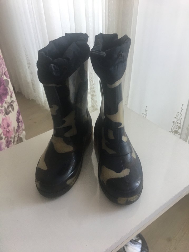 Erkek Çocuk Kamuflaj Desenli Lastik yağmur Çizmesi içi tüylü
