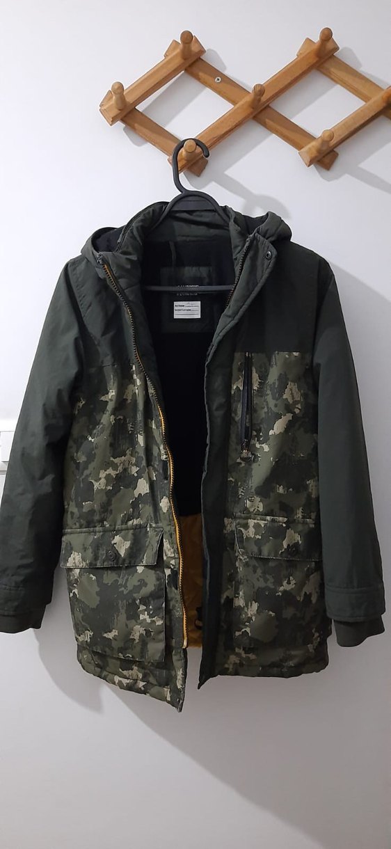 Erkek çocuk için kamuflaj desenli, kemerli ve sokak stiline uygun mont