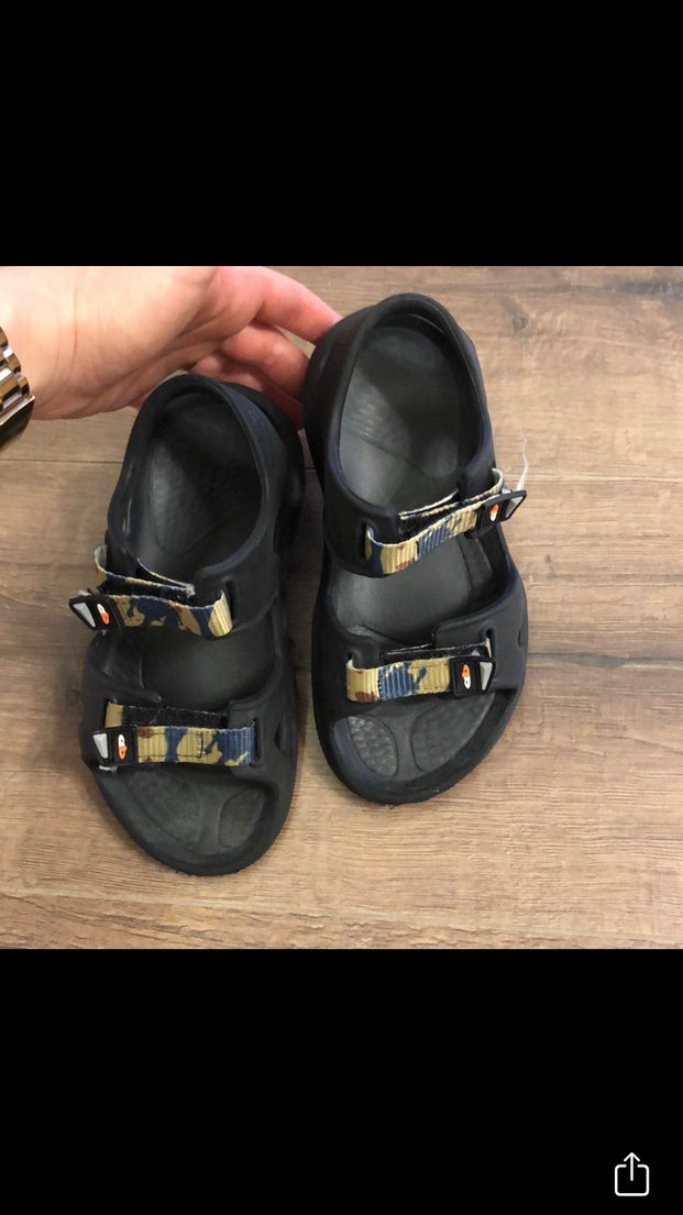 Erkek çocuklar için koyu renk kauçuk tabanlı, kamuflaj desenli toka bantlı sandaletler, günlük rahat kullanım için uygundur.
