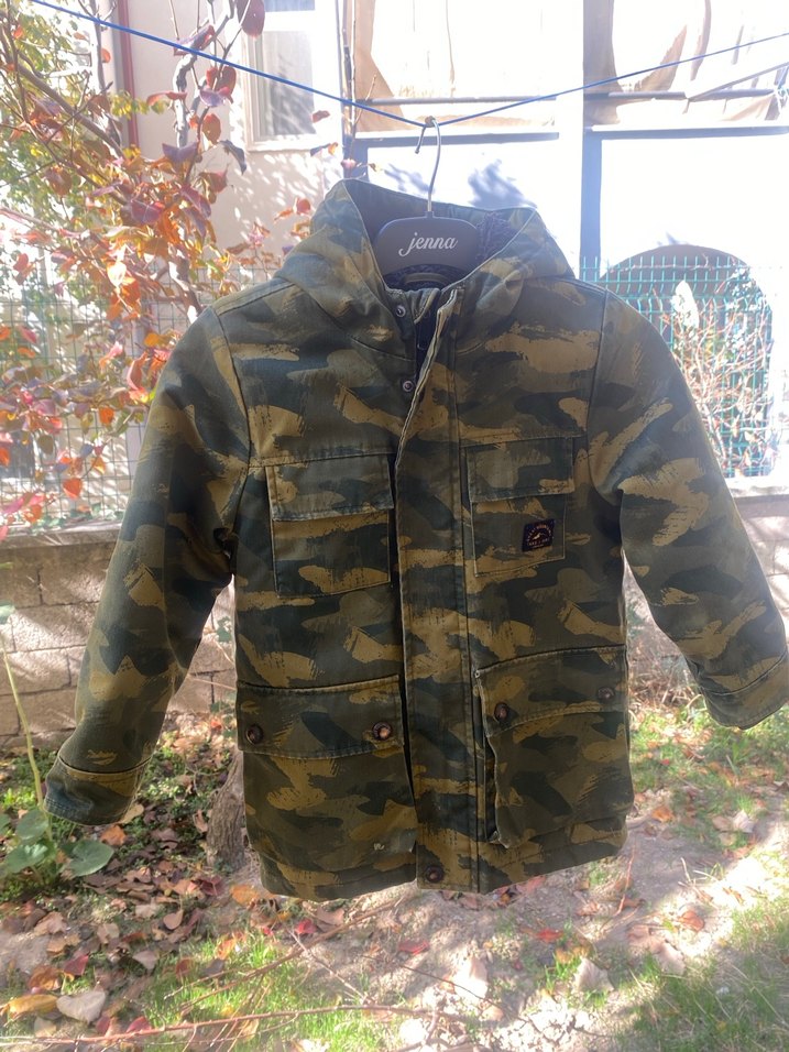 Erkek çocuk içinkamuflaj desenli , kumaşı çok kaliteli ve sıcak kumaştan yapılmış mont. 6-7-8 yaşa kadar uygun sadece bir kez yıkandı.