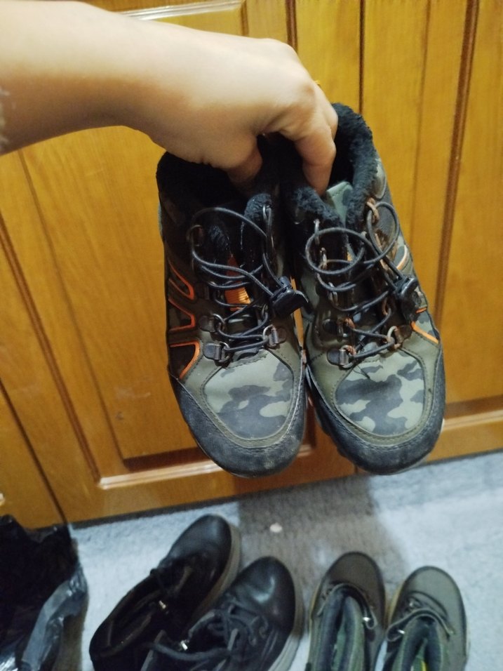Gri ve kahverengi kamuflaj desenli, tokalı lastik erkek çocuk botu. Sokak modası ve rock punk havası taşıyor.