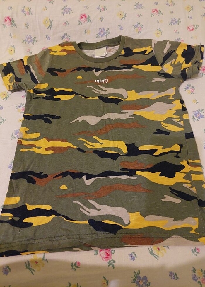 Erkek cocuk kamuflaj baskılı tshirt az kullanildi sorunsuz
