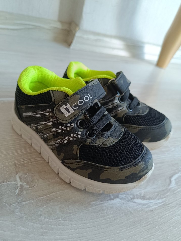 Gri kamuflaj desenli, cırt cırtlı ve kauçuk tabanlı erkek çocuk spor ayakkabısı. Canlı iç astarıyla rahat kullanım sunar. 1 kere giyildi. tertemiz 23 numara