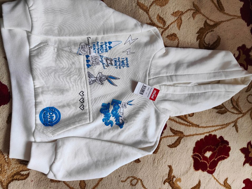 Erkek çocuklar için kapüşonlu, baskılı, pamuklu ve bol kesim uzun kollu sweatshirt. mavi sweatshirt orijinal sıfır kullanılmamış 3/4 yaş