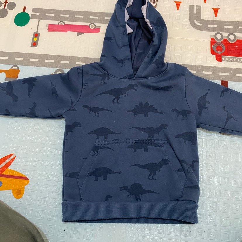 Erkek Çocuk Kapüşonlu Dinozor Baskılı Sweatshirt