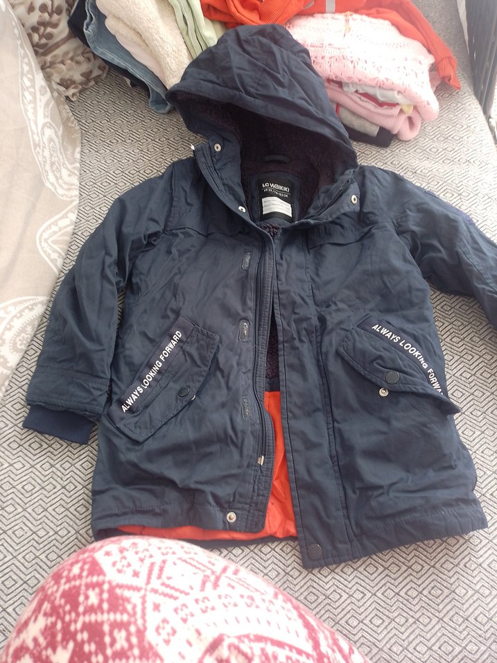 Erkek çocuk için düğmeli, kapüşonlu ve notched lapel yakalı, yumuşak dokulu mont. Rahat kesimi ve cep detaylarıyla günlük kullanıma uygundur.