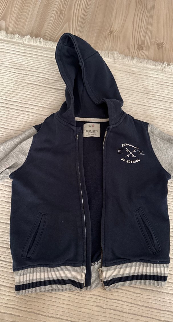 Erkek çocuklar için fermuarlı, bisiklet yaka, fitted kesim gri ceket. Yumuşak kumaştan, baskılı ve street wear tarzında, kontrast kollu ve cepli.
