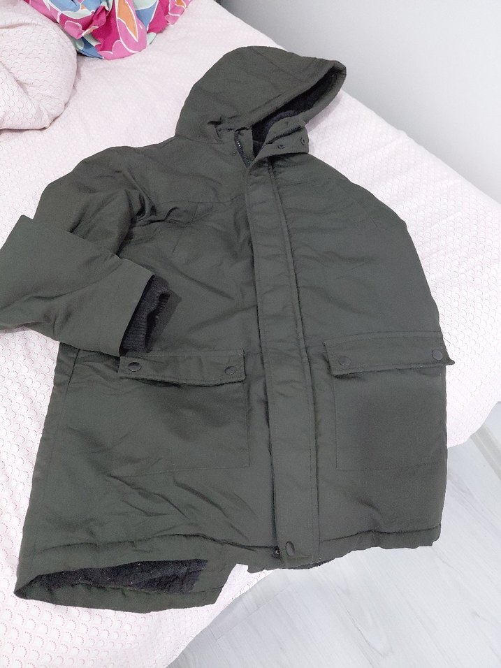 Işıktan renk tam çıkmıyor ama haki yeşil gayet iyi durumda 12-13-14 yaş olabilecek oldukça iyi durumda cepli erkek çocuk montu
