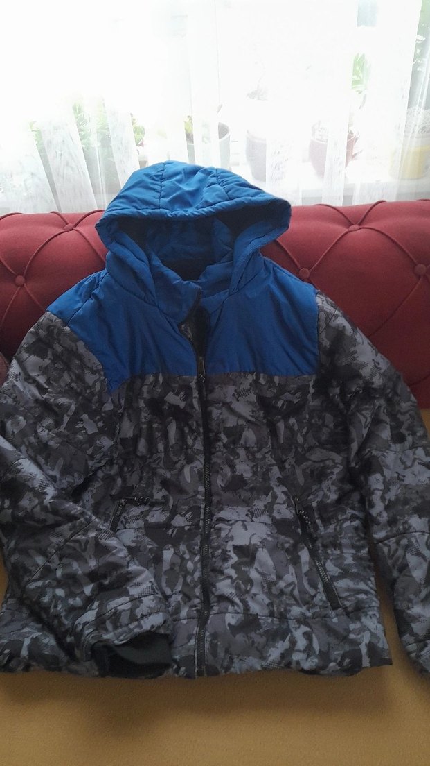 Erkek çocuklar için kapüşonlu, fermuarlı ve fitted kesim gri kamuflaj desenli mont. Üst kısmı mavi renkte, yumuşak ve sıcak kumaştan üretilmiştir. 13.14.15 yaş için uygundur.