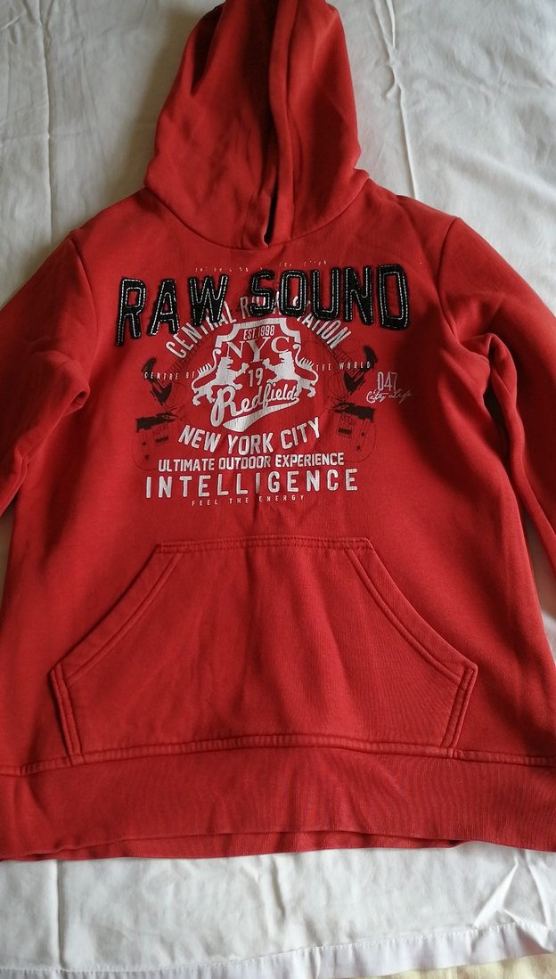 Bu erkek çocuk sweatshirtü uzun kollu, bisiklet yaka ve bol kesimdir. Yumuşak ve sıcak kumaştan yapılmış, renkli baskılar ve örme dokusu ile RAW SOUND ve INTELLIGENCE yazıları bulunur. Herhangi bir kusuru yoktur. 12-13 Yaş erkek.