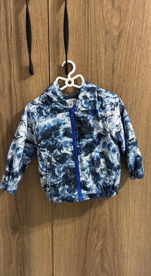 Erkek çocuklar için kapüşonlu, fermuarlı ve bol kesim mavi batik desenli yağmurluk. Yumuşak ve sıcak fleece kumaştan üretilmiştir. ️