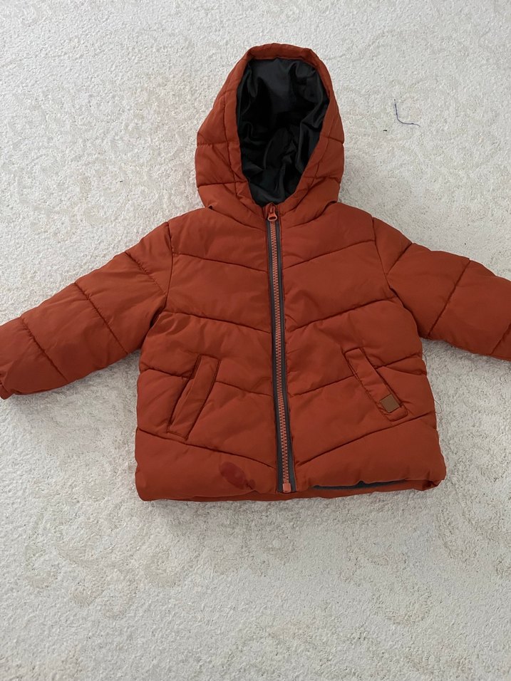 yumuşak ve sıcak kumaştan yapılmış, kapüşonlu ve kürklü yakalı, düz ve desen içermeyen, sokak stili uyumlu erkek çocuk montu.