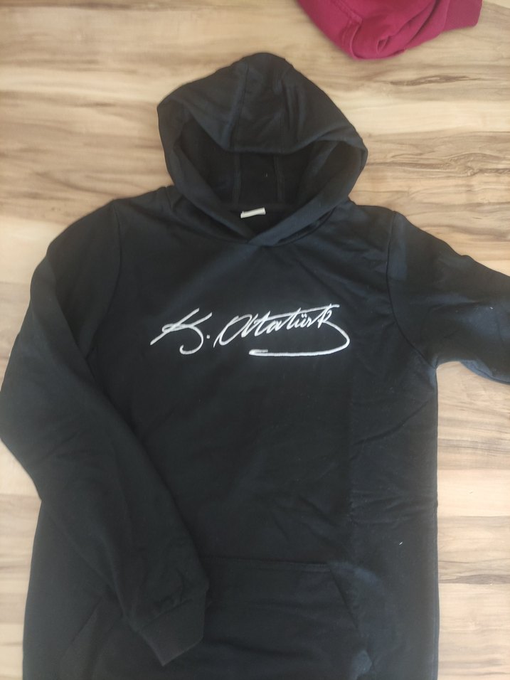 Siyah kapüşonlu erkek çocuk sweatshirt, uzun kollu ve bol kesimdir. yumuşak kumaştan üretilmiştir.