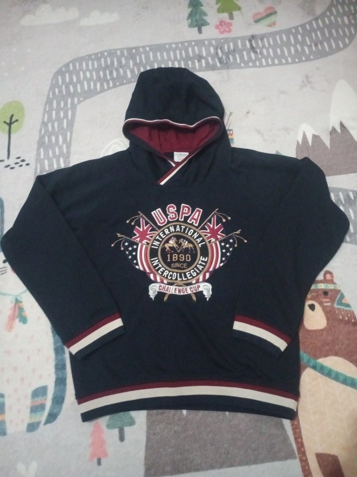Lacivert renkli, kapüşonlu erkek çocuk ,12 yaş,Uspa marka,bir iki kez kullanıldı yepyeni, içi elyaflı değil orta kalınlıkta
