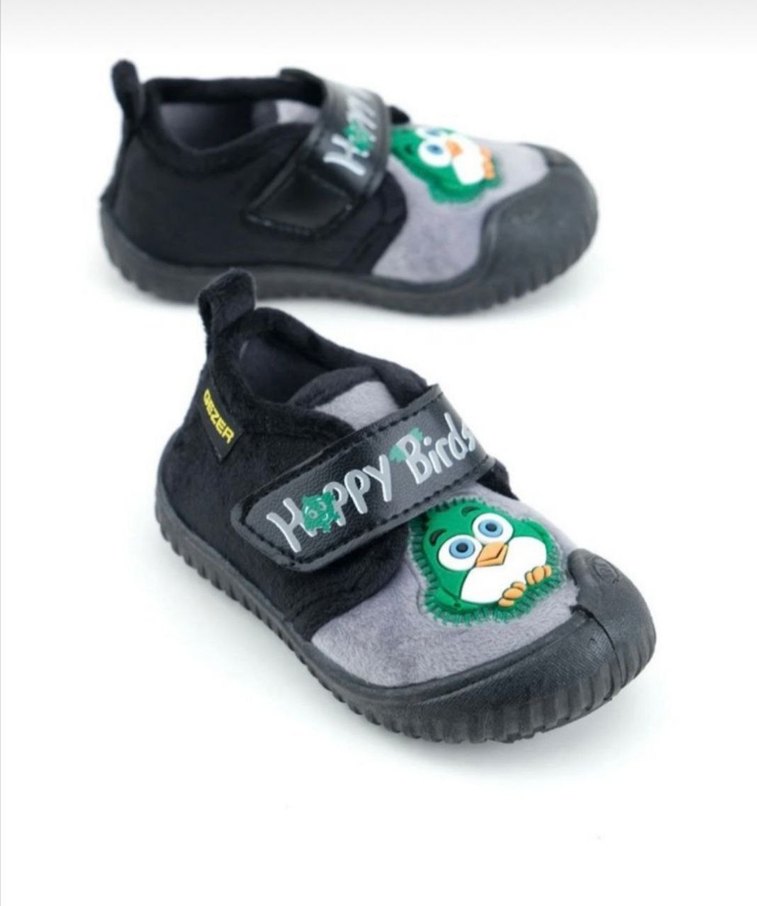 Erkek çocuklar için renkli baskılı baykuş desenli, kaydırmaz tabanlı ve cırt cırtlı sıcak panduflar Rahat ve trend bir görünüm sunar.