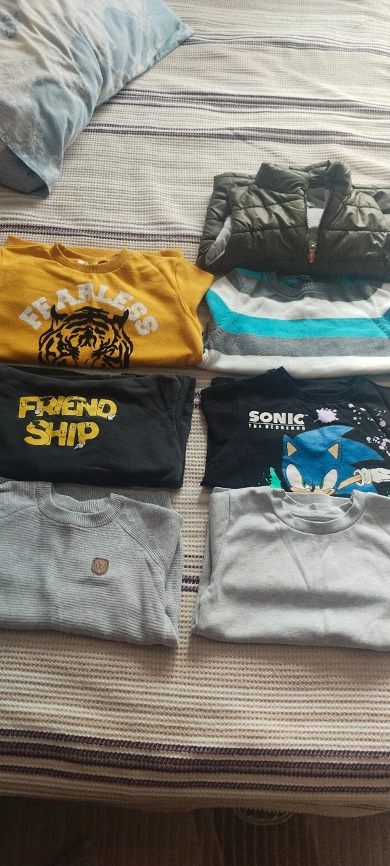 hepsi yeni gibidirler. yelek ve sağdaki 3 kazak 3,4 yaş uyumlu diğerleri 4.5 yaş uyumluudr kazaklar LC Waikiki yelek cıvıl markadir