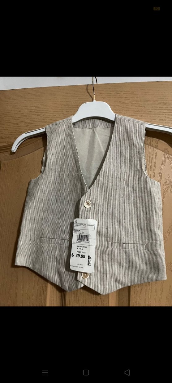 Erkek çocuklar için keten kumaştan, bej renkli, düğmeli ve yakası kesimli kolsuz yelek. Bohem tarzda, rahat kesim. Fiyatı: 39,99 ₺.
