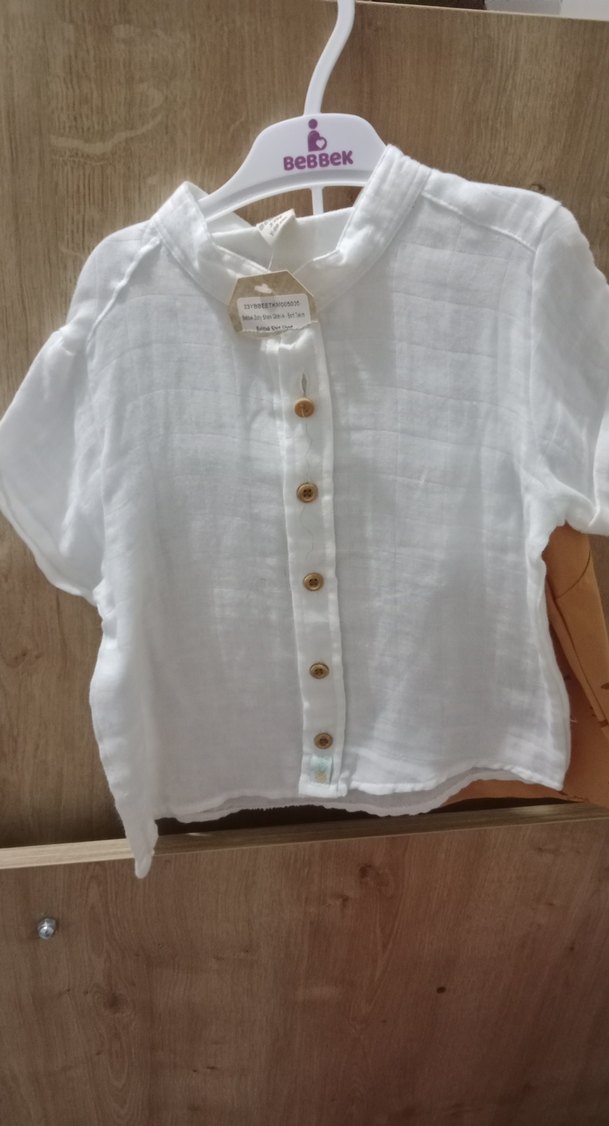 Erkek çocuk için kısa kollu, yuvarlak yaka ve bol kesim keten gömlek. Düğmeli önü ve sade, bohem tarzı vardır.