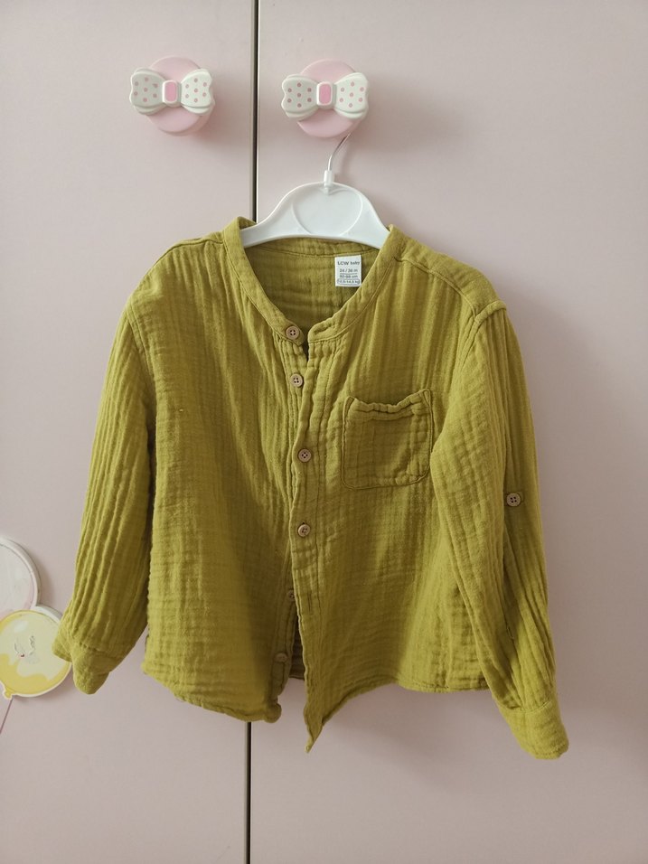 Erkek çocuklar için düğmeli, uzun kollu, keten gömlek. Salaş kesim ve yuvarlak yakalı sade bohem tarzı. Çok yakışıyor güzel temiz kullanıldı.