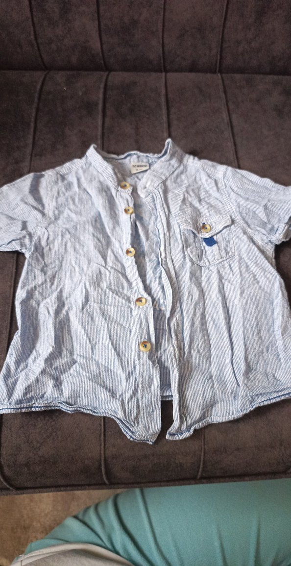 Erkek çocuklar için keten kumaştan, düğmeli, kısa kollu ve yakalı gömlek. Rahat kesimi ve mavi-gri tonu ile gündelik kullanıma uygundur.