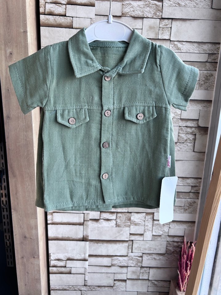Erkek çocuk keten takım, kısa kollu ve düğmeli. Notlu yaka ve rahat kesimiyle günlük sokak tarzına uygundur. 9-12 ay beden seçenekleri mevcuttur.