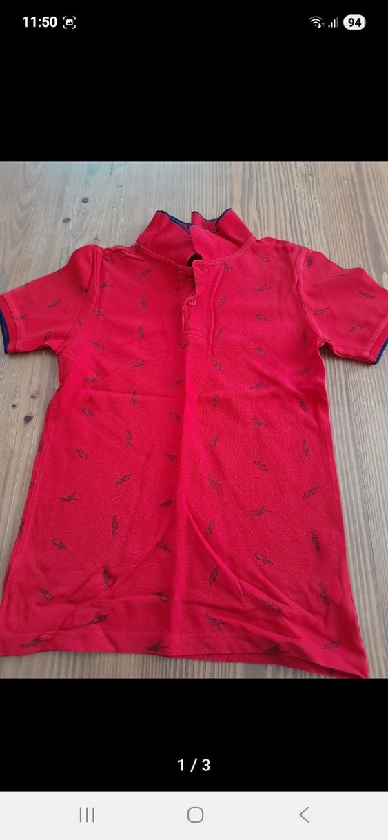 Erkek çocuklar için kısa kollu, yakalı ve düğmeli kırmızı baskılı polo tişört. Sentetik kumaştan, renkli ve baskılı desene sahip, şık sokak stili için uygundur.