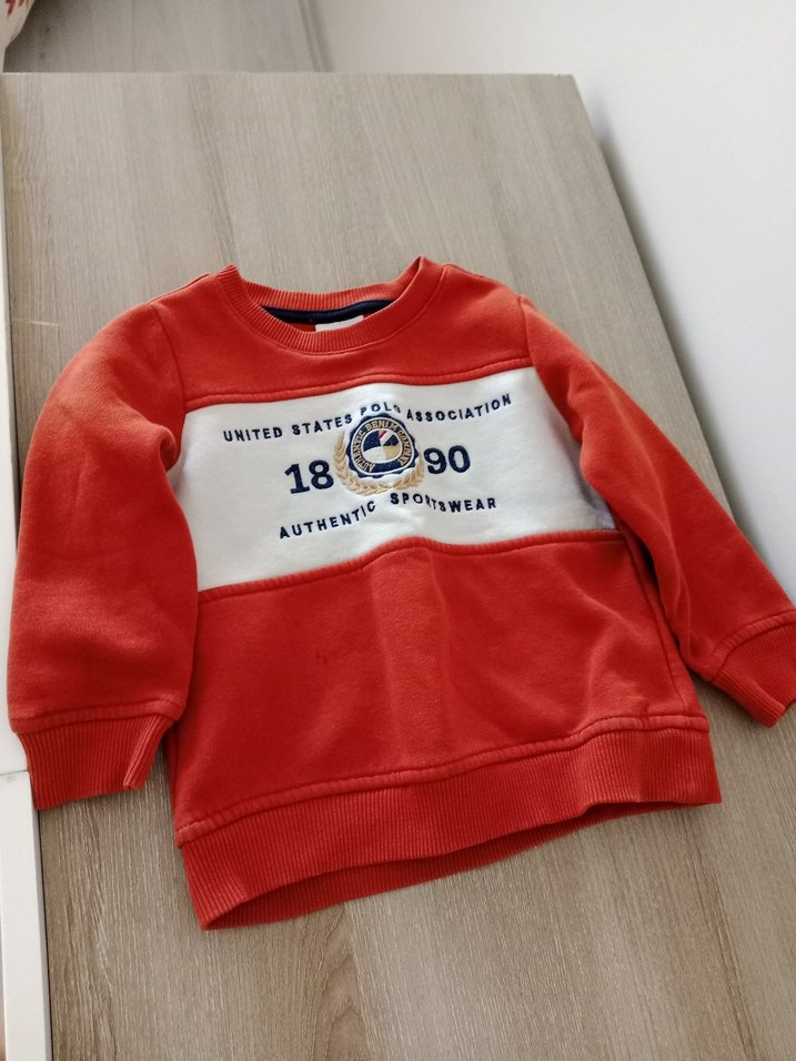 Erkek çocuk için yuvarlak yakalı, uzun kollu ve bol kesim kırmızı sweatshirt. Yumuşak tüylü kumaştan, renkli örme ve baskılı detaylarla 1890 yazılı. Trendy ve rahat.