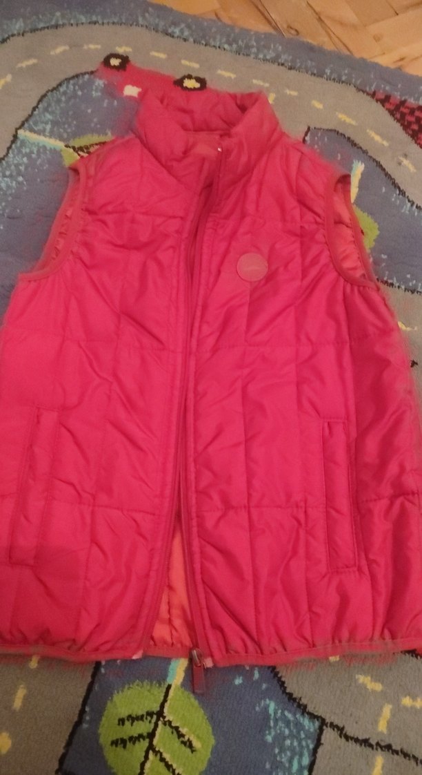 Yumuşak ve sıcak kumaştan yapılmış, fermuarlı ve kolsuz pembe kız çocuk yeleği. Rahat kesimli, günlük kullanım için uygun.