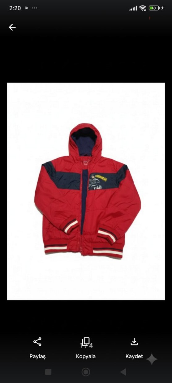 Erkek Çocuk Kırmızı Kapüşonlu Fermuarlı Ceket