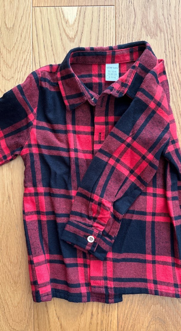 Erkek çocuk için uzun kollu, düğmeli, kırmızı-siyah kareli, rahat kesim gömlek. Yumuşak ve sıcak kumaştan üretilmiştir.
