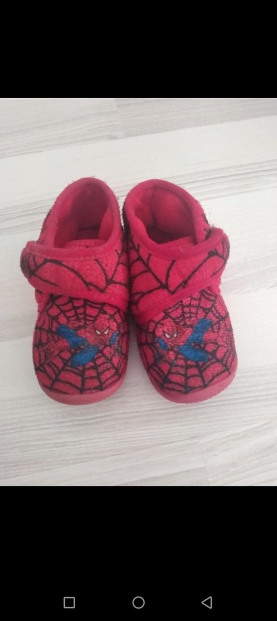 Renkli nakışlı detaylara sahip kırmızı erkek çocuk terliği, yumuşak ve sıcak kumaştan, kolay kullanım için cırt cırtlıdır.